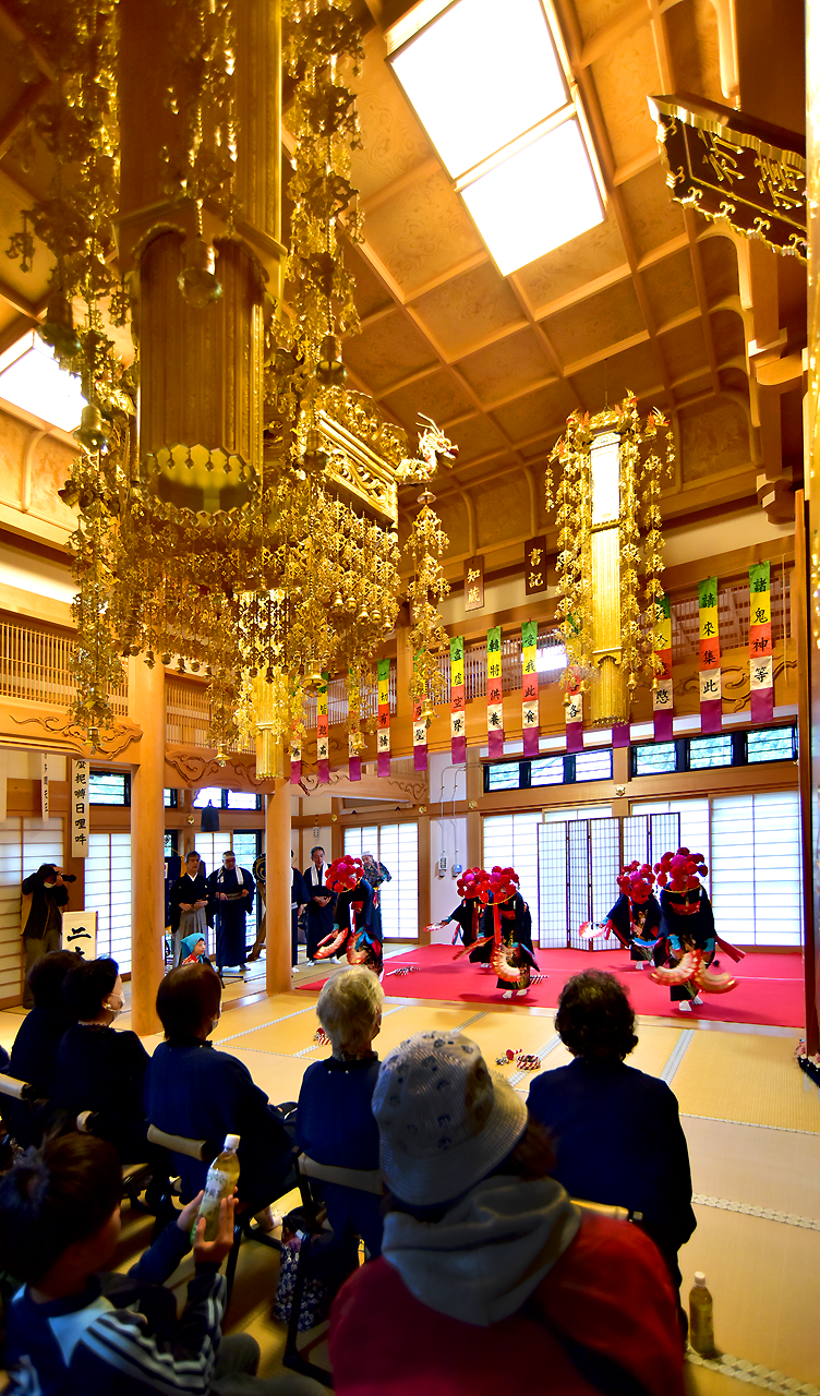 雨天のため本堂内での奉納となりました。